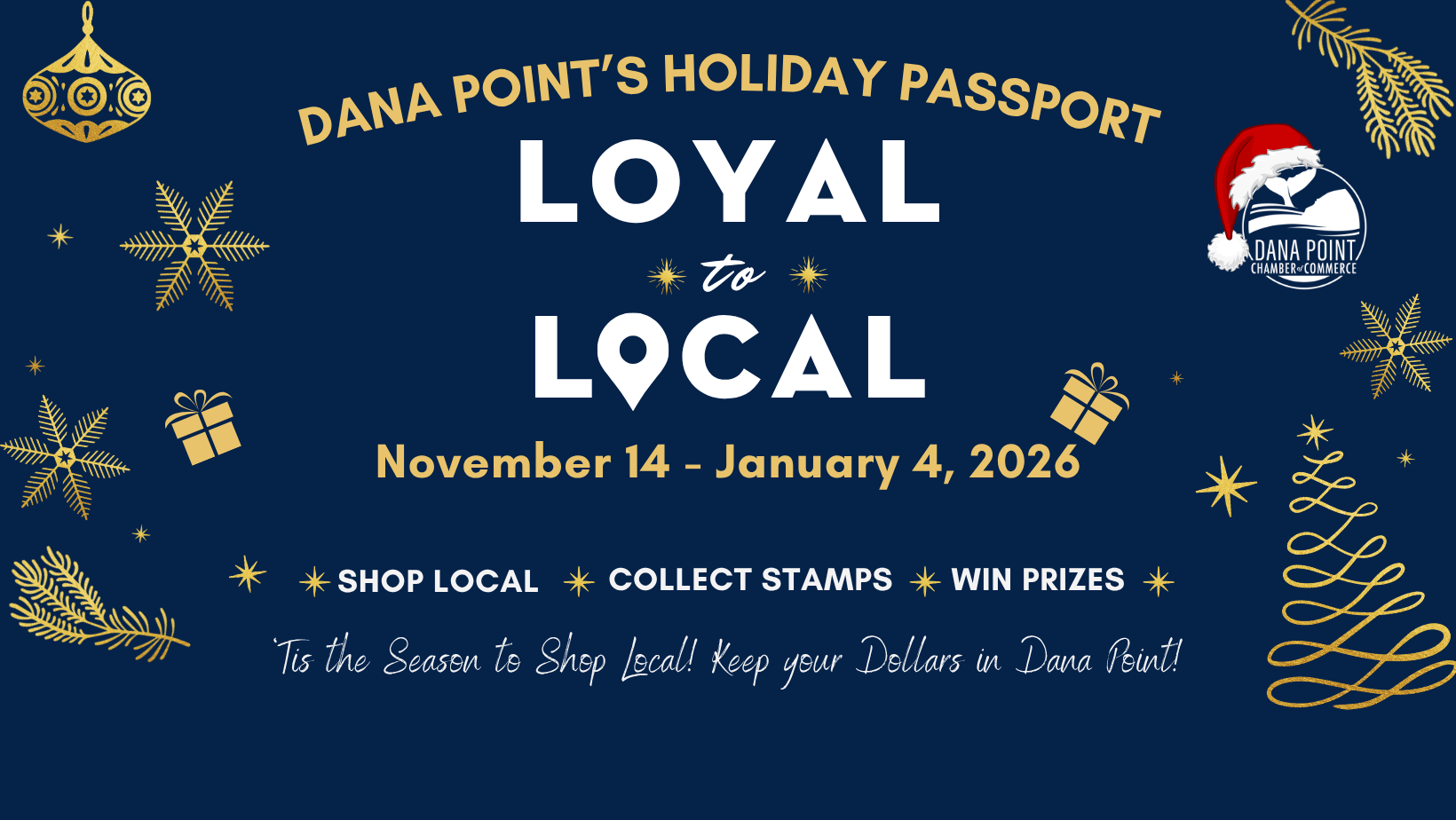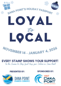 The Dana Point Chamber of Commerce's Loyal to Local Holiday Shopping Campaign celebrates the one-of-a-kind businesses that make our community special. By choosing to shop local, you’re keeping money within Dana Point, supporting local jobs, and helping preserve the charm and character of our town. Plus, it’s a more sustainable way to shop, reducing environmental impact.